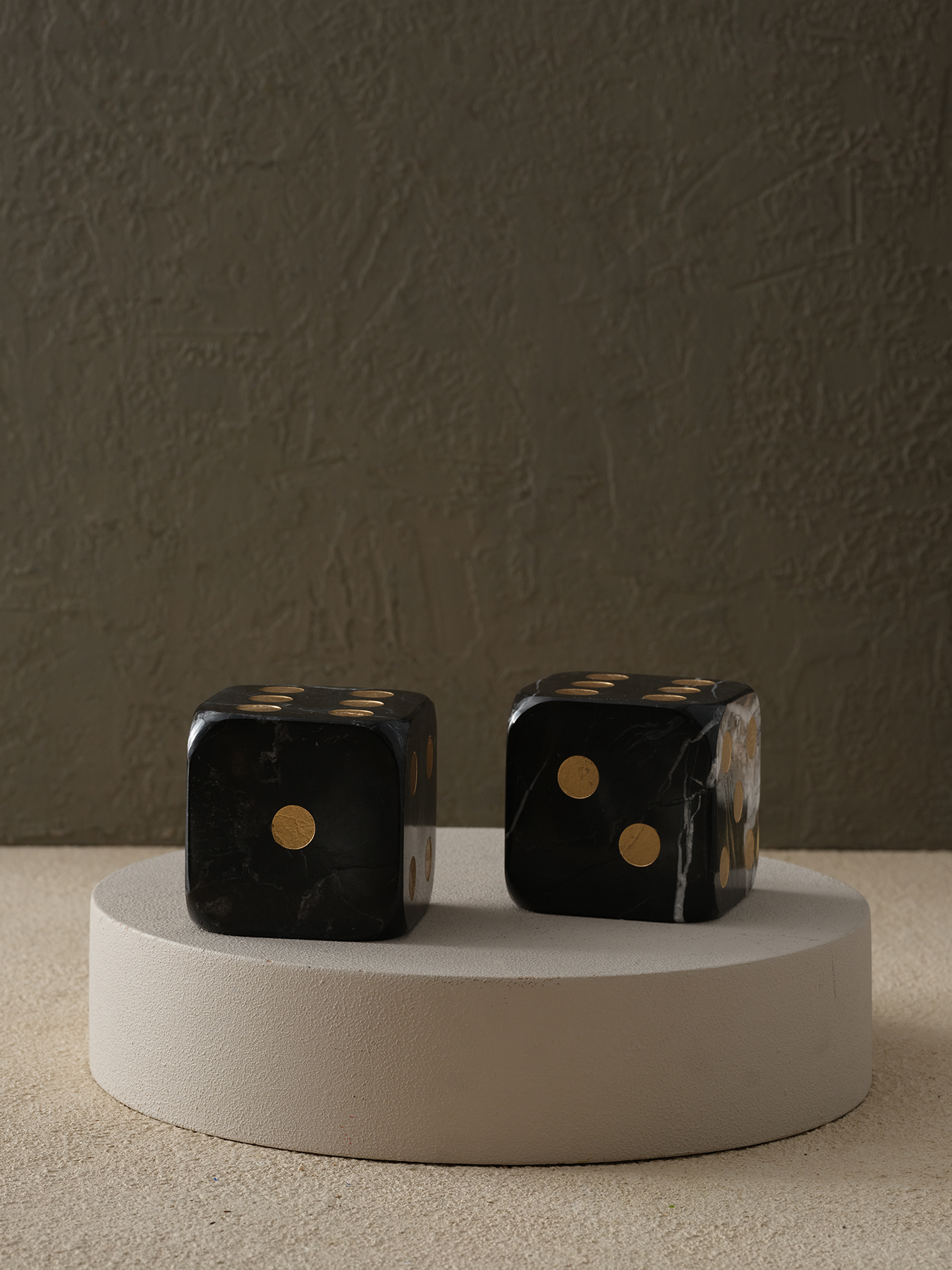 Doğal mermer dokusu ve altın detaylarıyla dikkat çeken bu dekoratif zar seti, mekânlara sofistike bir tarz kazandırmak için tasarlandı.