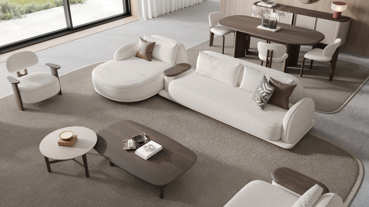 GUSTO Koltuk, minimal tasarım anlayışını sofistike detaylarla buluşturarak çağdaş yaşam alanlarına yeni bir soluk getiriyor. Yuvarlatılmış hatları, yumuşak dokulu döşemesi ve ceviz tonlarındaki ahşap detaylarıyla Gusto, hem sade hem de dikkat çekici bir denge sunar.