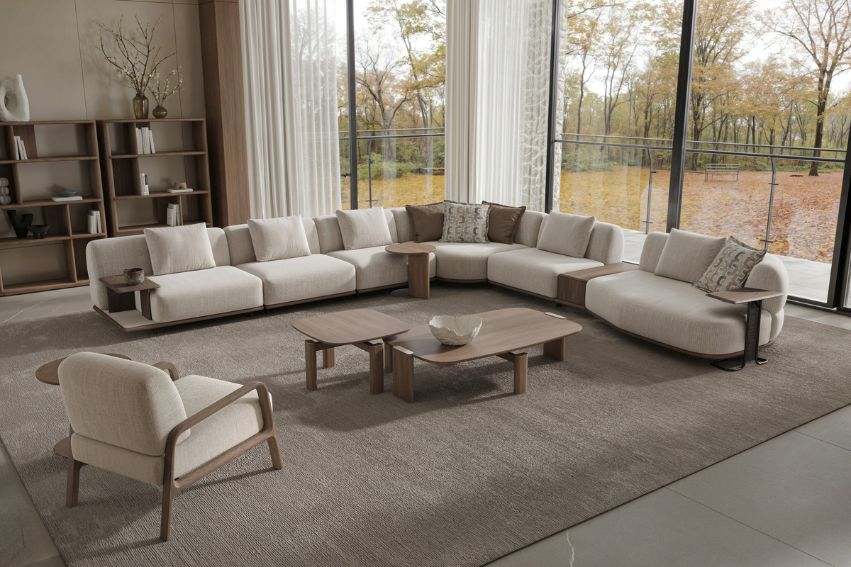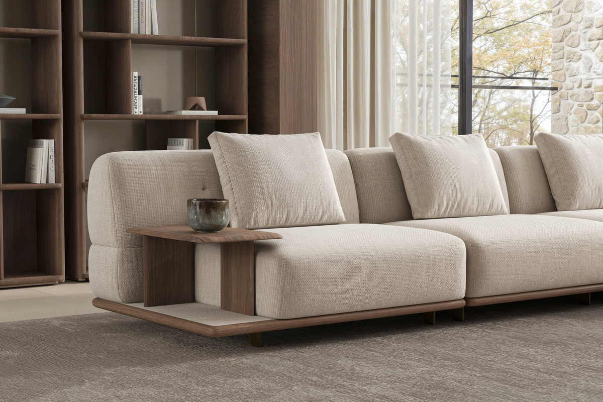 PALAZZO Köşe Koltuk; mimari bir dinginlik ve estetik netlik sunar. Akıcı hatları, modüler yapısı ve yumuşak formlarıyla çağdaş iç mekânlara zarif bir denge getirir.