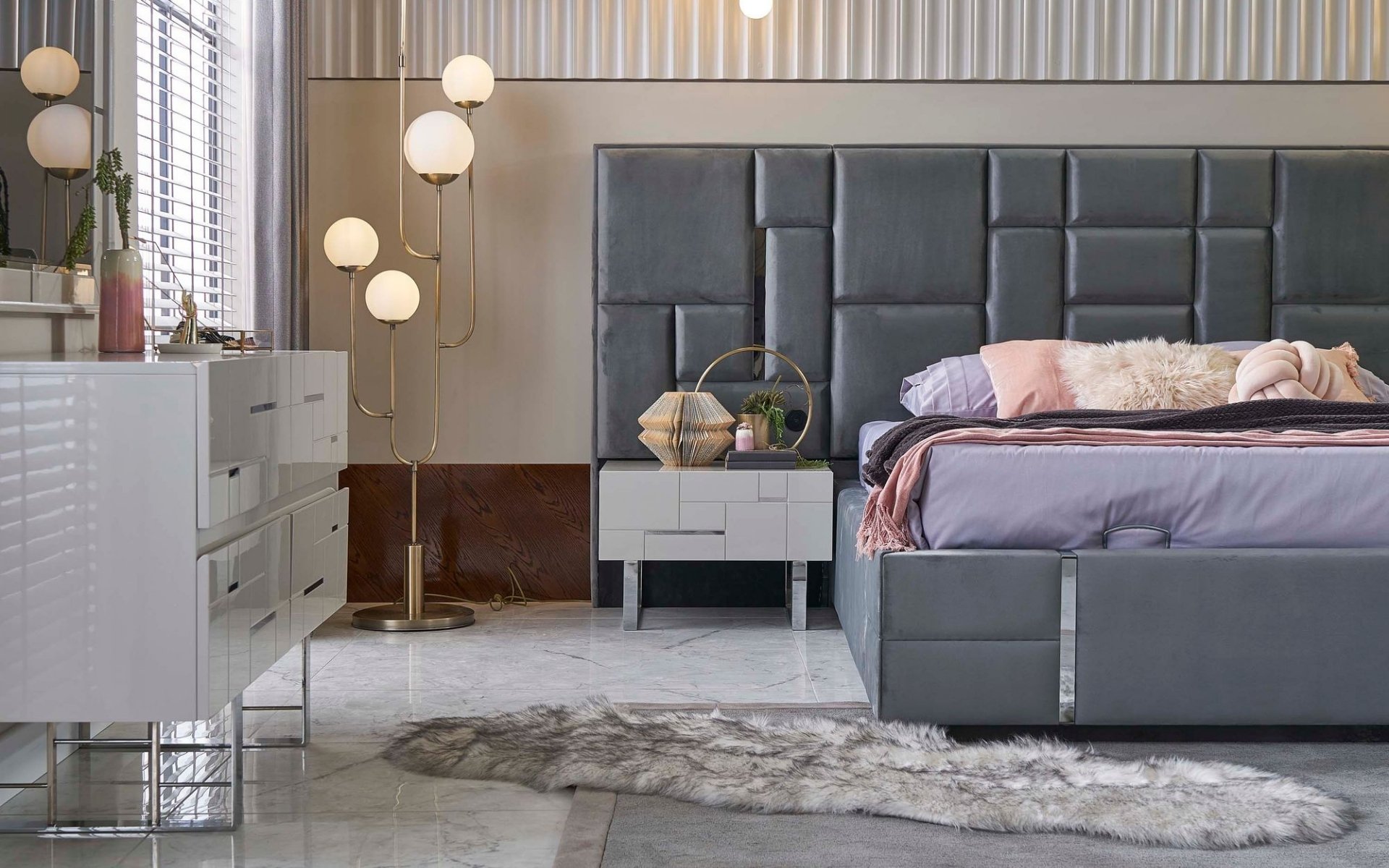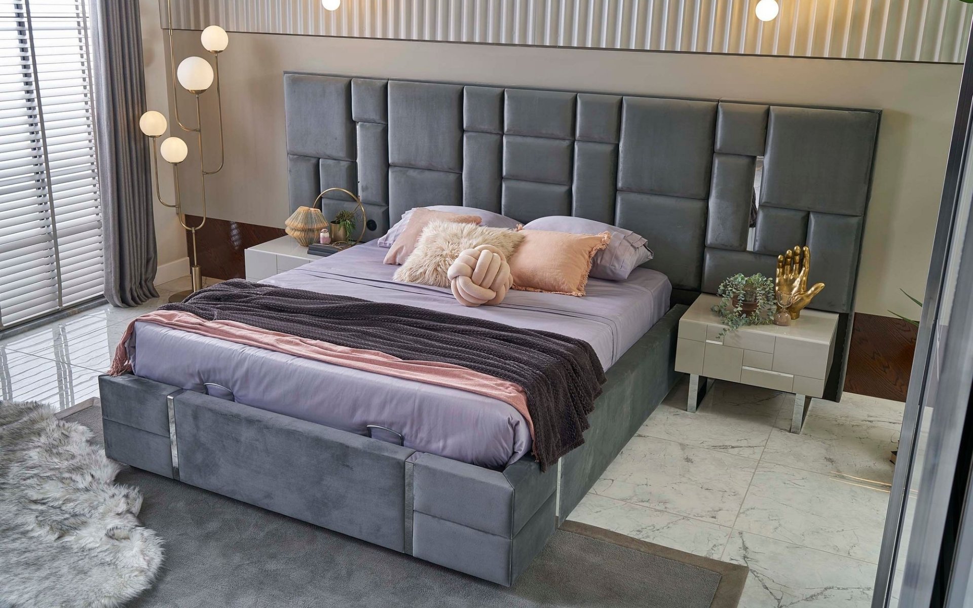 Minimal çizgilerin, parlak yüzeylerle buluştuğu STARUX; zarafeti sadece göstermekle kalmıyor, yaşam alanınıza etkileyici bir duruş kazandırıyor. Yüksek modül kapaklarında kullanılan yansıtıcı yüzeyler, mekana derinlik ve ışık katarken; kadife yumuşaklığındaki başlık paneli, her güne konforla uyanmanızı sağlıyor.
